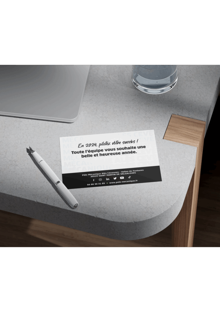 Pour célébrer la nouvelle année, j’ai conçu une carte de vœux immersive et professionnelle pour le Pôle Mécanique Alès Cévennes, mettant en avant l’univers du circuit automobile. J’ai eu l’opportunité d’organiser un shooting photo dans un studio image de 2 pilotes professionnels. Ce visuel, également utilisé pour les supports de communication du Pôle, renforce l’identité visuelle et l’engagement du circuit auprès de ses partenaires et passionnés.